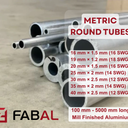 At Fabal, we offer a comprehensive selection of aluminium round tubes in both metric and imperial measurements, providing the perfect solution for your projects. Whether it's a small repair or a large-scale construction, you'll easily find the right tube for your needs, as we stock many pre-cut lengths and diameters.